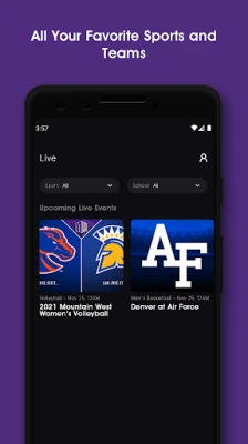 Watch your favorite Mountain West teams across all 18 sports. The Mountain West Network streams hundreds of live events throughout the year and you can watch them all on the app. Get exclusive live and on-demand content from all of the MW's institutions including Air Force, Boise State, Colorado College (women's soccer), Colorado State, Fresno State, Hawai‘i (football), Nevada, New Mexico, San Diego State, San José State, UNLV, Utah State and Wyoming.