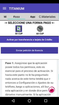 Aplicación base para las activaciones de aplicaciones en dispositivos que no tengan líneas de Cubacel. Ej: Tablets, PC.