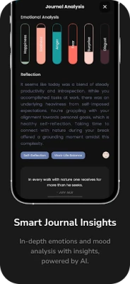 With just one tap, record your daily thoughts, feelings, or experiences—whether it's a quick check-in or a deep emotional reflection. Verbo uses intelligent mood recognition to analyze your entries and provides personalized insights to help you better understand your emotional health.
